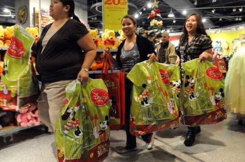 There are Asian guys wearing short-sleeved collared shirts that fit well and prominently feature dozens of fish. I don’t know why, but this shirt is incredibly popular. The Asian girls also wear floppy felt hats, jean shorts and crop tops. Their color palette is more muted. There’s emphasis on black.